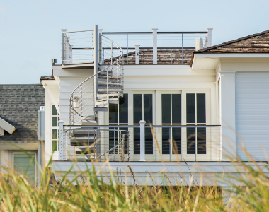 Exterior spiral staircases require corrosion resistant finishes capable of withstanding moisture, temperature fluctuations, and UV exposure.